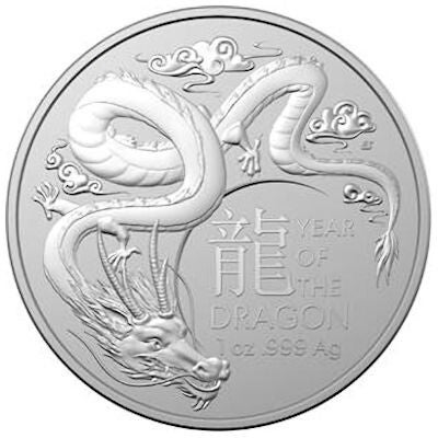 Die Royal Australian Mint (RAM) gibt im Jahr 2024 eine 1-Unzen-Silbermünze mit einem Nennwert von 1 AUD und dem Motiv des Jahres des Drachen heraus. Hergestellt aus hochreinem 999er Feinsilber, ist diese Münze Teil einer streng limitierten Auflage von 50.000 Stück weltweit und wird einzeln in Kapseln verpackt.
