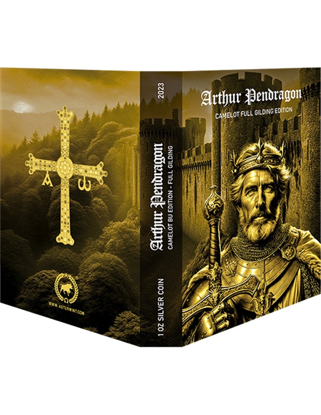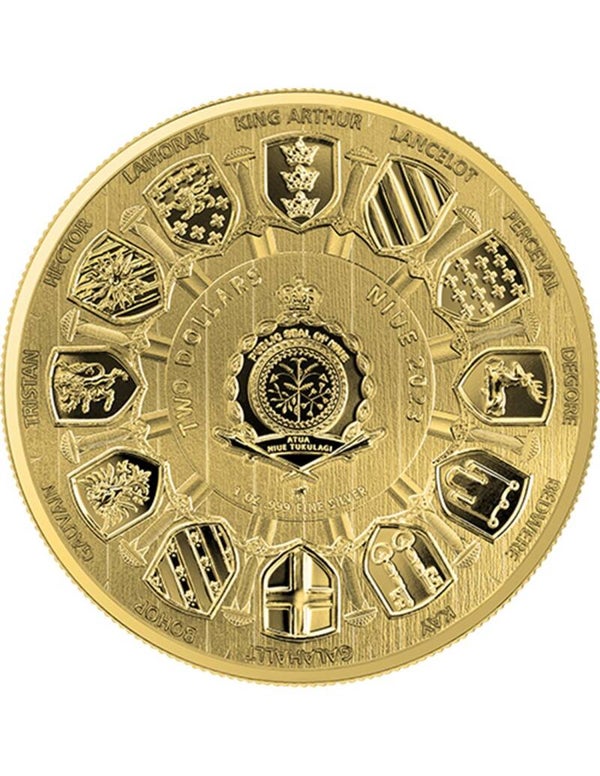 Arthur Pendragon Camelot 24k Goldvergoldung 1 Oz Proof Silbermünze 2 $ Niue 2023
