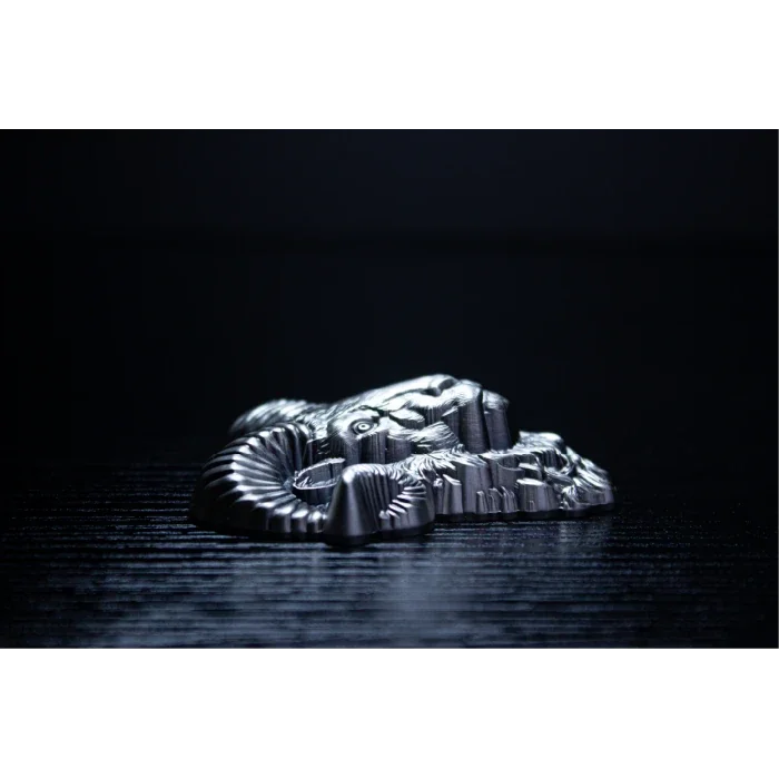 Eine beeindruckende Offerte für Naturfreunde kommt von einem renommierten Edelmetallhersteller – Bighorn RAM. Auf ihr prangt ein majestätischer Bock mit imposantem Geweih.
