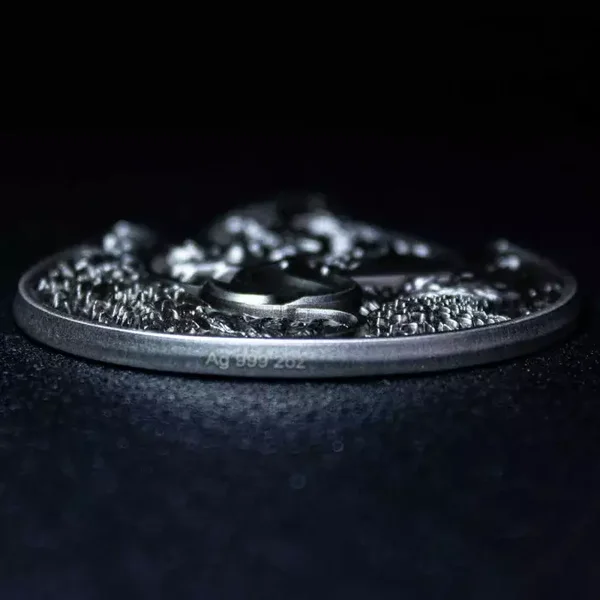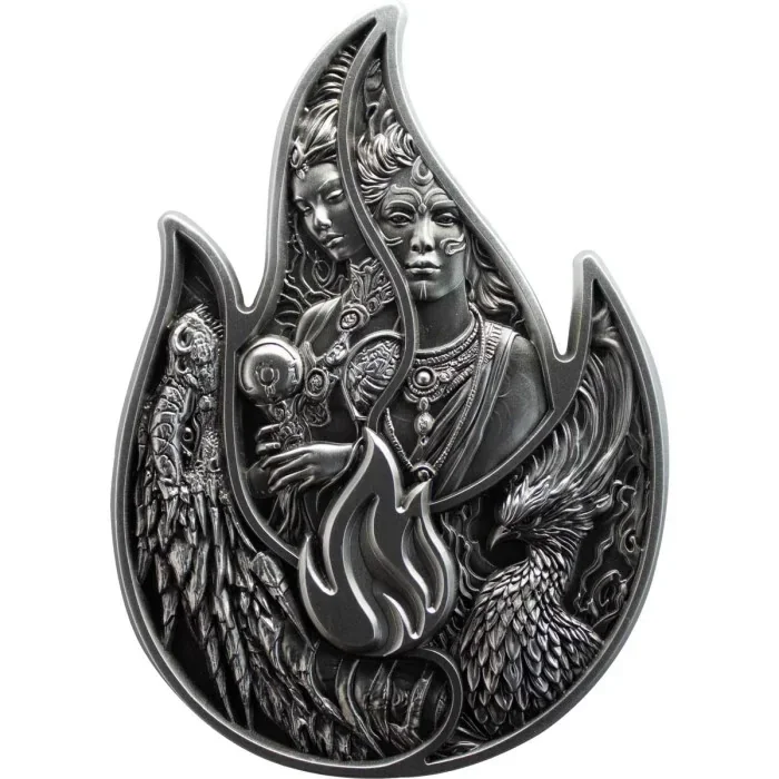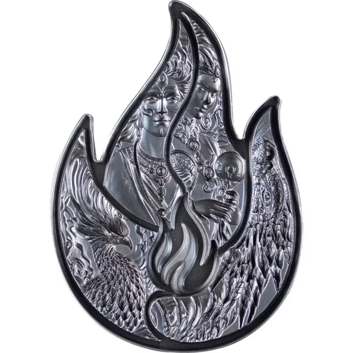 Die Ewige Flamme wurde aus hochwertigem Silber geprägt. Das Stück mit einem Gewicht von zwei Unzen hat eine antike Oberfläche. Das Design wurde so gestaltet, dass dieses Stück übereinander gestapelt werden können.