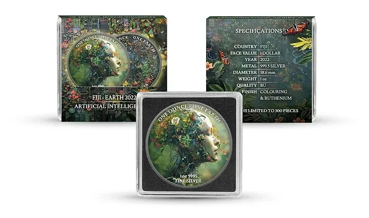 Willkommen zur neuesten Veröffentlichung aus der Serie "Künstliche Intelligenz II" – die "Mindful Miss Earth" 1-Unzen-Silbermünze für das Jahr 2022. Diese Serie widmet sich der fortschreitenden Entwicklung der künstlichen Intelligenz und ihrer Bedeutung für das menschliche Leben, indem sie die ständig wachsende Zusammenarbeit zwischen künstlicher Intelligenz und Menschheit erkundet.