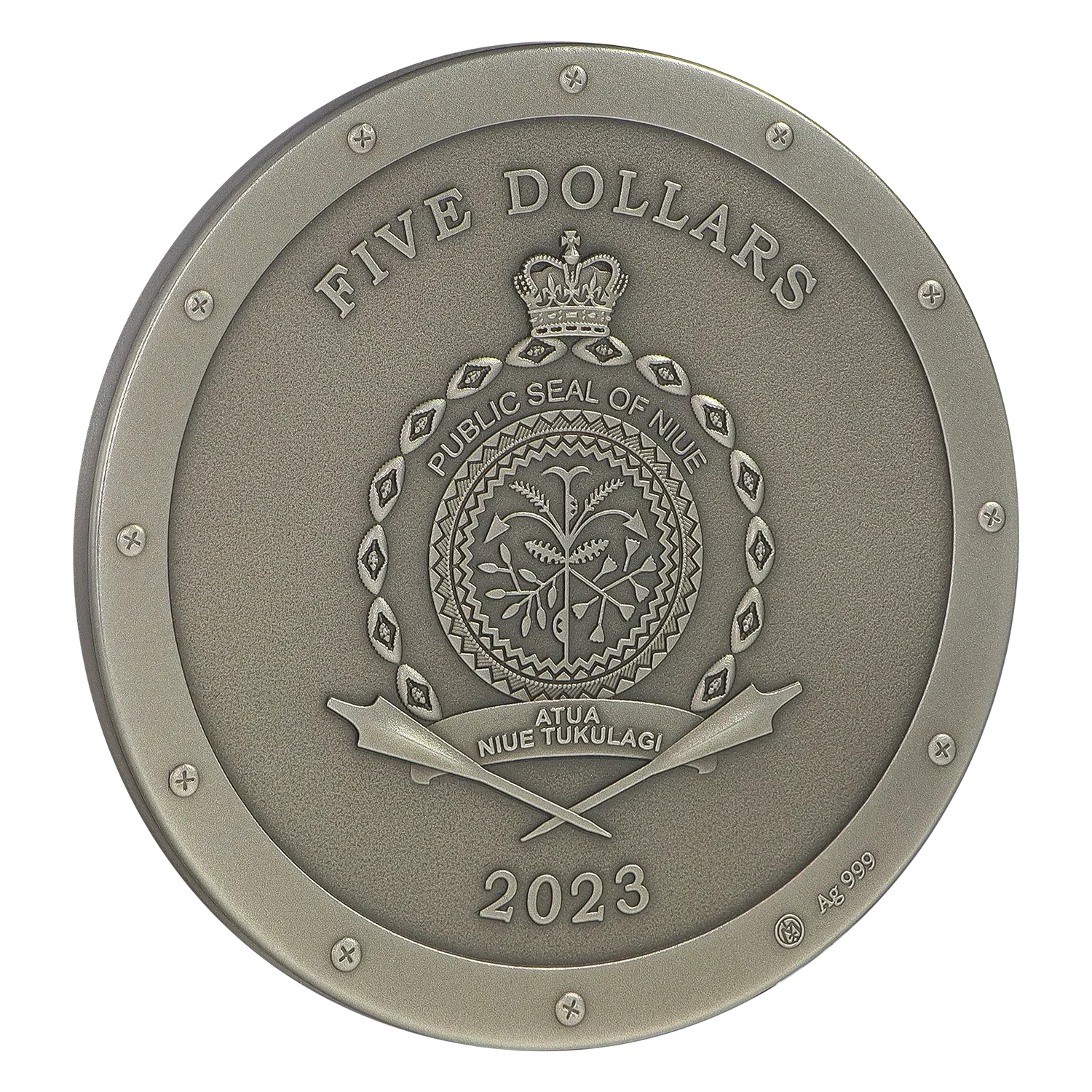 Auf der Vorderseite der Münze ist das Wappen von Niue abgebildet. Unten sind das Symbol der Insel Niue – zwei gekreuzte Katoua-Spaltkeulen – und das Motto der Insel „atua Niue tukulagi“ zu sehen.