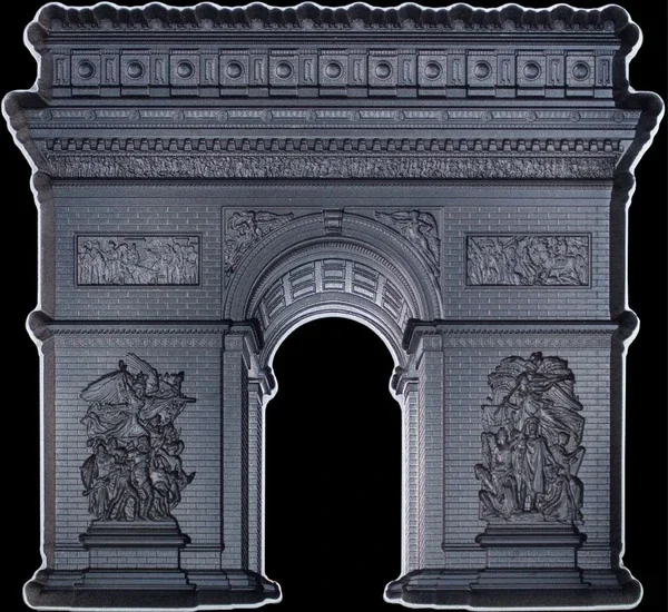 Dieses außergewöhnliche 2-Unzen-Silbermstück präsentiert eine detaillierte, dreidimensionale Darstellung des Arc de Triomphe. Die kunstvollen Verzierungen und Steinmetzarbeiten werden besonders hervorgehoben, während das Design die Reliefs auf beiden Seiten des Bogens eindrucksvoll wiedergibt. Zu den Details gehören die ikonischen Friese und Skulpturen, darunter am oberen Rand aufwendige Schnitzereien, die historische Ereignisse darstellen. Auf der rechten Seite prangt ein majestätisches Relief der geflügelten Siegesgöttin. Die Vorder- und Rückseite spiegeln die Architektur des Triumphbogens wider und zeigen weitere feine Details der Struktur. Das Stück besticht durch ein Antique Finish, das dem Design zusätzliche Tiefe und Charakter verleiht, und ist in der exakten Form des Arc de Triomphe gestaltet.