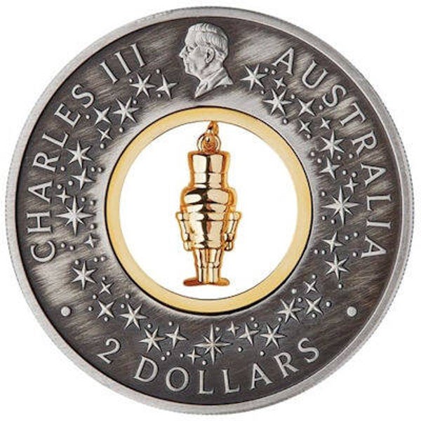 Australien - 2 AUD Nussknacker 2024 - 2 Oz Silbermünze Antik Finish Gilded