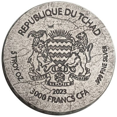 Tschad - 3000 Francs Ägyptische Relikte: Amenhotep IV - 5 Oz Silbermünze Antik Finish*