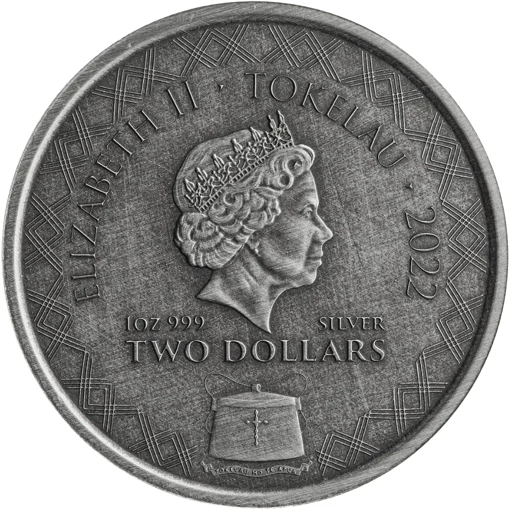Tokelau – 2 NZD Silbermünze 2022 – Komodo Dragon – 1 Unze – Antik Finish*